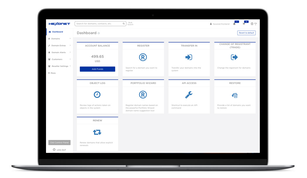 - FREE: Reselling with HEXONET's web control panel is completely free! All updates and enhancements are also free.